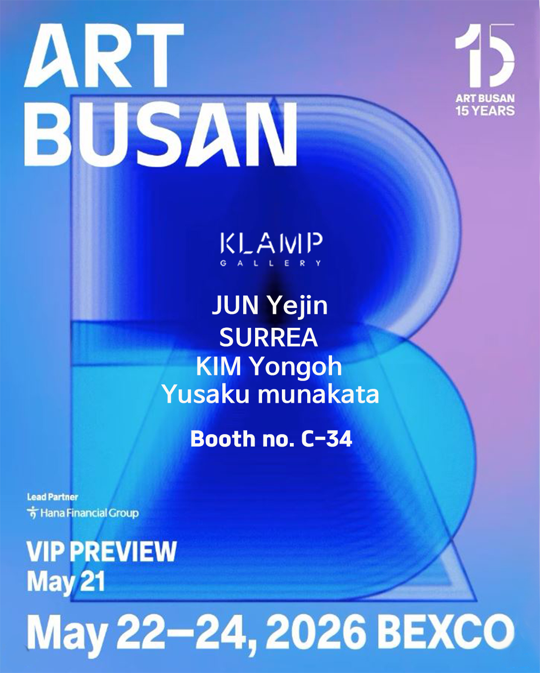 ART BUSAN 2026KLAMP GALLERY 부스 위치: C-34 참 여 작 가JUN YejinSURREAKIM YongohYusaku munakata * 관람 날짜&시간 * *전시장 주소<BEXCO> 제1전시장 (부산 해운대구 APEC로 55)<BEXCO> 1st Exhibition Hall (55, APEC-ro, Haeundae-gu, Busan)